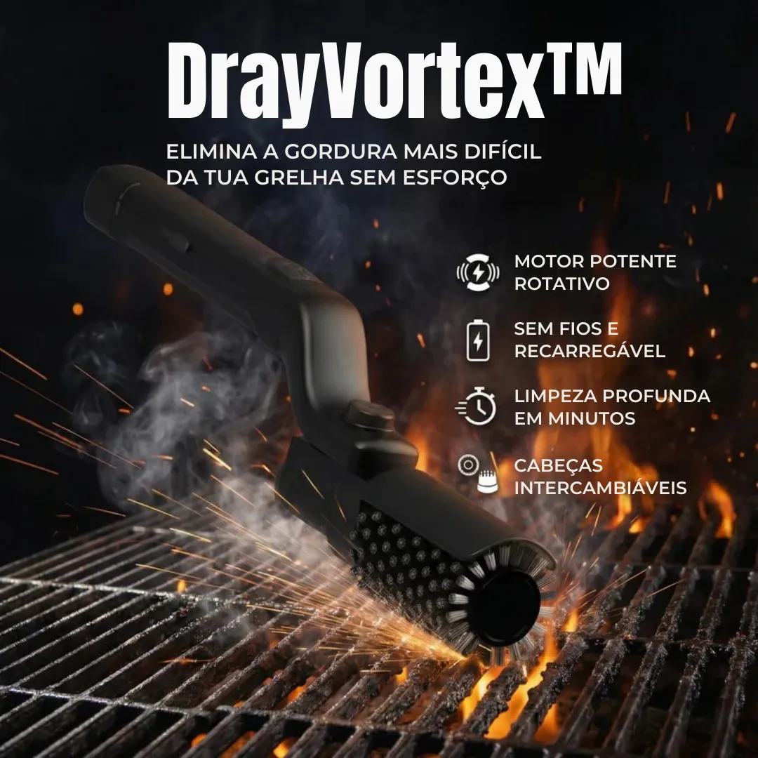 ⏱️ Poupança de Tempo: Não percas o final do convívio a limpar. Com DrayVortex™, deixas a grelha como nova no tempo que demoras a servir outra bebida.