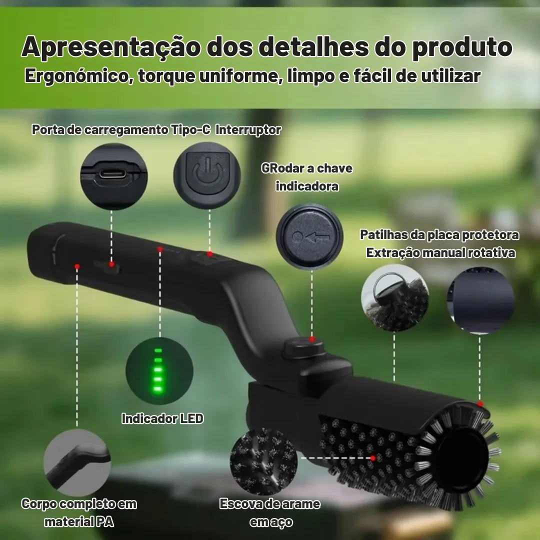 ✔️ Material: ABS reforçado e cerdas de nylon de alta densidade.